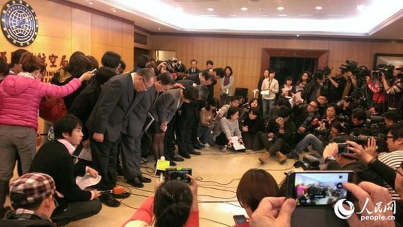 陳欣德說,飛機起飛4分鐘失聯(lián),今天天氣狀況符合飛行要求,具體原因待飛安會調查。圖為記者會現(xiàn)場。
