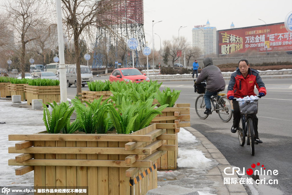 吉林街頭安插“油麥菜”假花搞綠化
