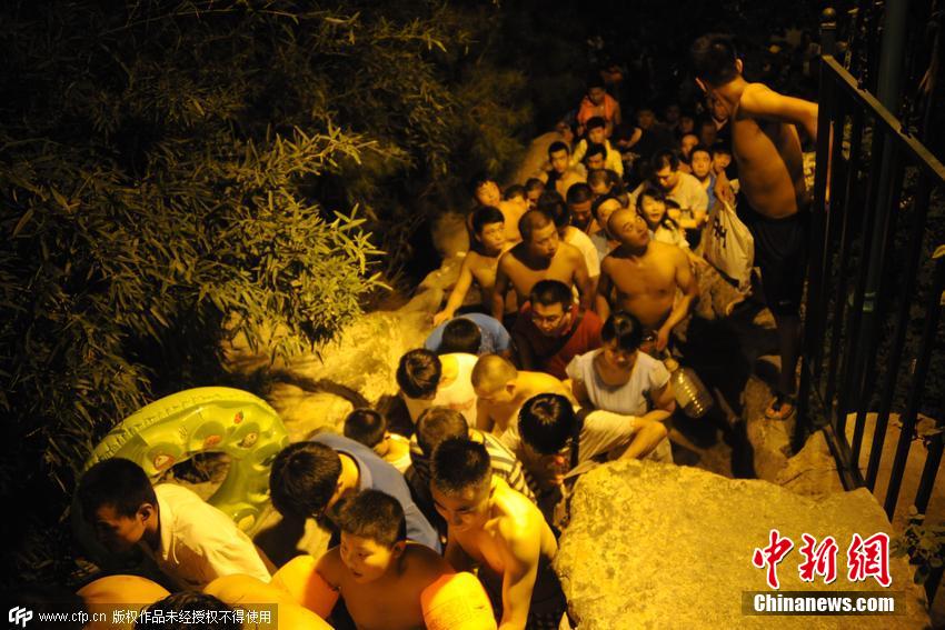 2015年07月28日,山東省濟(jì)南市,免費(fèi)泉水浴場(chǎng),吸引數(shù)百人在門外排“長(zhǎng)等待。場(chǎng)面十分壯觀。據(jù)了解,由于濟(jì)南持續(xù)高溫悶熱,這兩天泉水浴場(chǎng)迎來(lái)了今年以來(lái)的最高峰,每天人滿為患,大概日接客近千人。管理方表示,人數(shù)爆滿時(shí)會(huì)適度限制市民進(jìn)入。陳寧 攝 圖片來(lái)源:CFP視覺(jué)中國(guó)Z4L安康新聞網(wǎng)