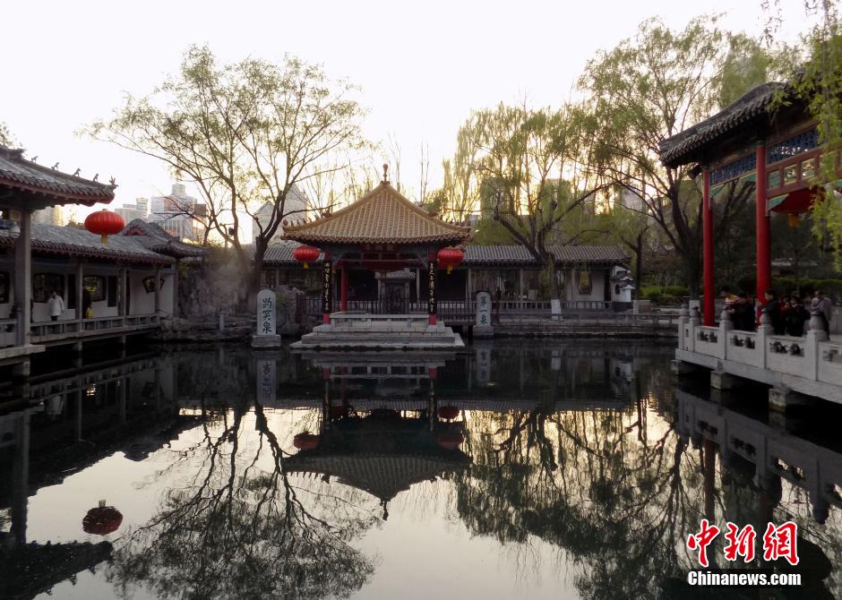 2016年3月27日,濟(jì)南著名的趵突泉和黑虎泉都已經(jīng)十分虛弱,出水量大減。黑虎泉西側(cè)獸頭僅剩一點(diǎn)流水,停噴在即。 圖片來(lái)源:視覺(jué)中國(guó)yy2安康新聞網(wǎng)