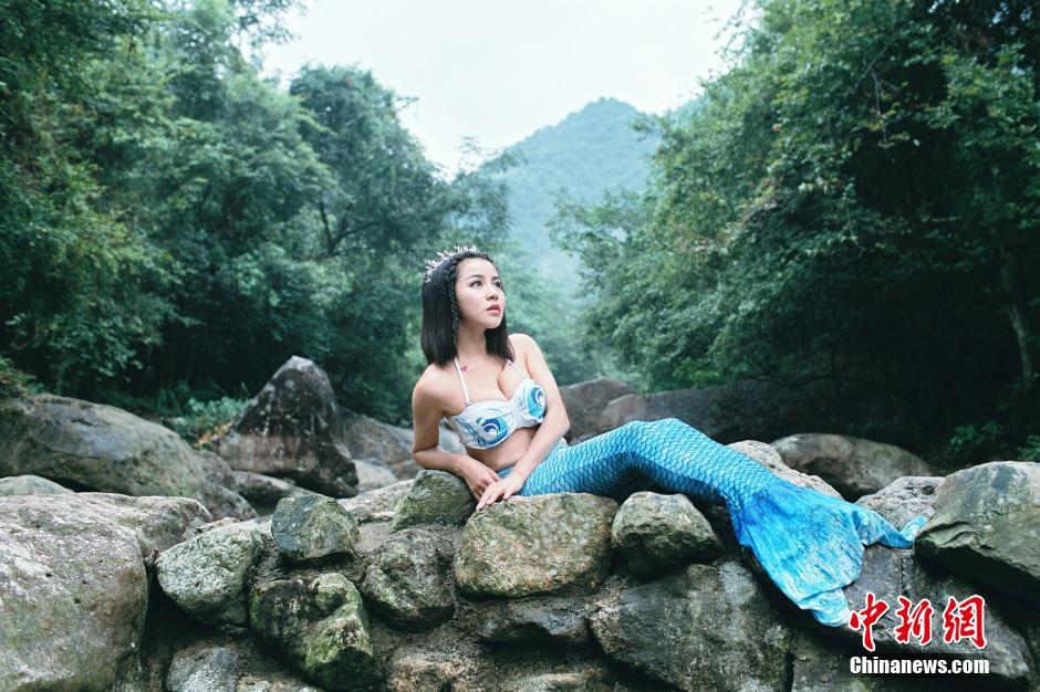 江西龍虎山上演真人版“美人魚Twins”