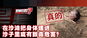 很多人喜歡在沙灘上玩沙子埋人的游戲,而網(wǎng)上卻有傳言說(shuō),這種“沙灘埋人”的玩法其實(shí)很危險(xiǎn),因?yàn)樯匙右坏┻M(jìn)了水,就會(huì)把埋在沙子里的人吸住,無(wú)法自拔。真有這么危險(xiǎn)嗎?為此,央視《是真的嗎》欄目記者來(lái)到秦皇島北戴河的沙灘來(lái)探尋真相。