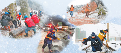 圖④:25日,安徽蚌埠固鎮(zhèn)火車站值班員在清理積雪冰塊。WB5安康新聞網