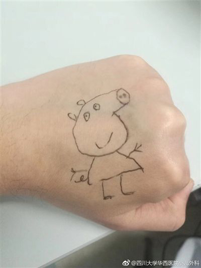 “小豬佩奇身上紋,值班用來哄病人!4月7日,四川大學(xué)華西醫(yī)院小兒外科主治醫(yī)師楊磊為了讓患者小朋友們心情愉悅,主動在左手上畫了一只流行卡通人物小豬佩奇來“討歡心”。因為遵守?zé)o菌原則,小豬佩奇很快就被洗掉,但這一幕還是被網(wǎng)友點贊,認為“有愛且專業(yè),感控愛心都需要。”