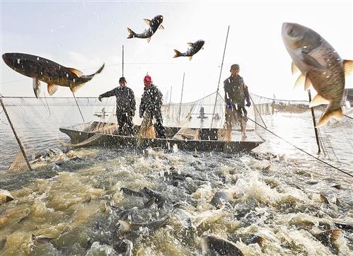 ▲江蘇省盱眙縣河橋鎮(zhèn)漁民在捕魚。盱眙縣不斷探尋水產(chǎn)養(yǎng)殖業(yè)高質(zhì)量發(fā)展之路,不斷提升當(dāng)?shù)厝罕娚钏健?周海軍攝
