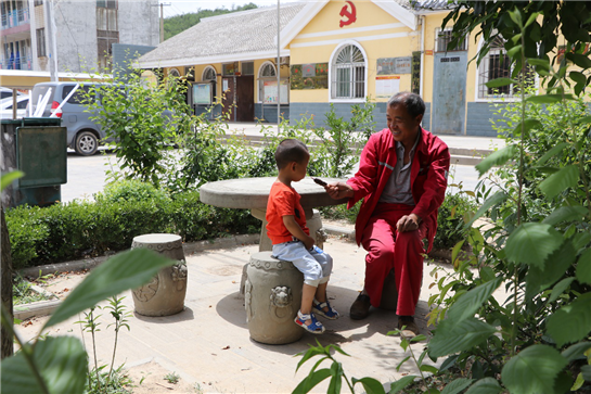 新寨河村村民馬生軍(右)帶著孫子在廣場(chǎng)上玩耍(供圖 子長(zhǎng)縣委宣傳部)