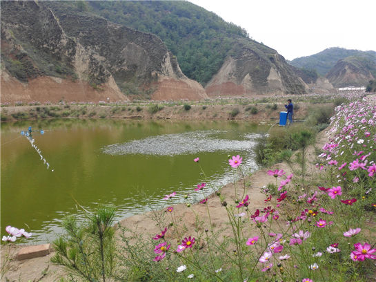 余家坪鎮(zhèn)郝家川村淡水養(yǎng)殖場(chǎng),鄉(xiāng)村美如畫(huà)。(供圖 子長(zhǎng)縣委宣傳部)