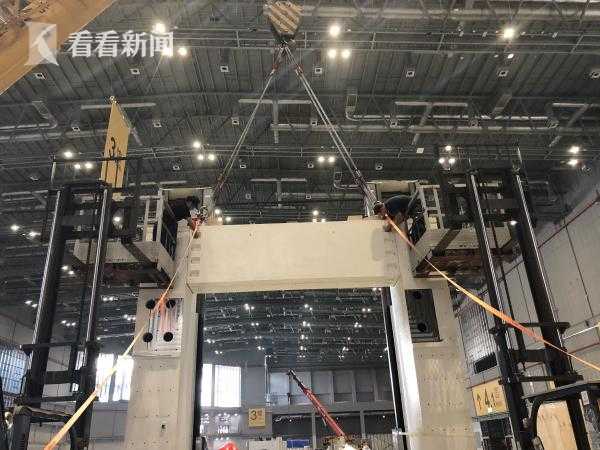 首屆中國國際進(jìn)口博覽會最大的展品,金牛座龍門銑床今天龍門構(gòu)架完成,預(yù)計(jì)下周二整個(gè)設(shè)備將完成安裝。