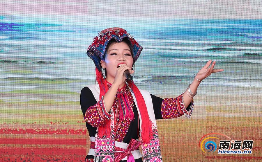 五指山苗族歌手曾若馨身著苗族傳統(tǒng)服飾,傾情演唱了歌曲《春雨來到咱苗村》。南海網(wǎng)記者李昊攝