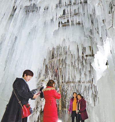 甘肅臨夏回族自治州大敦峽景區(qū)的冰瀑、冰掛景觀壯觀奇美,吸引眾多游客前往體驗(yàn)冰雪世界。