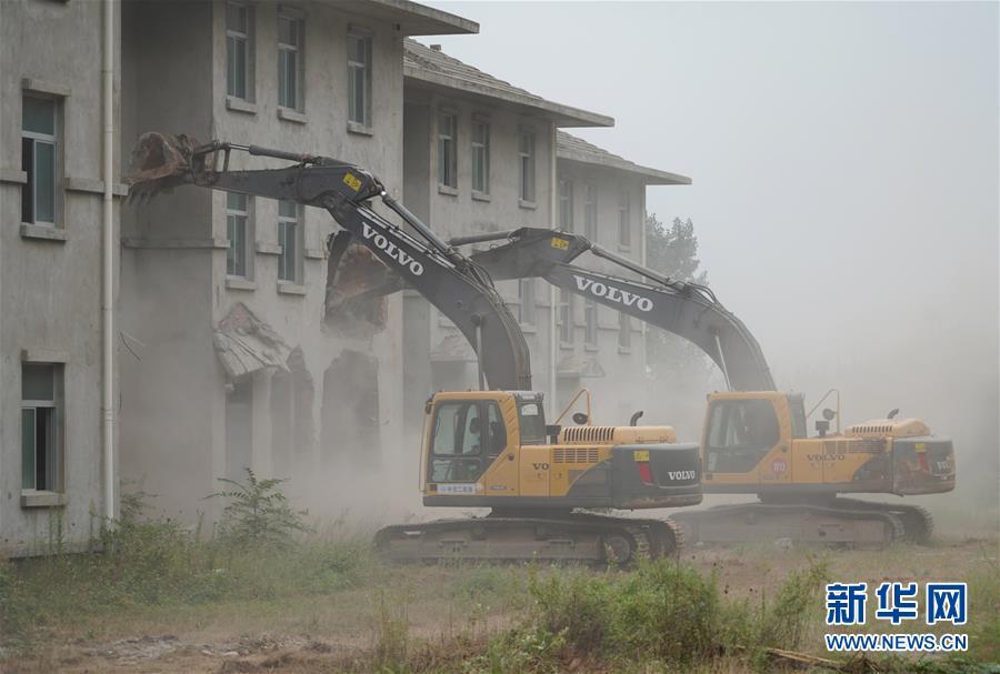 2018年8月14日,大型機(jī)械對陜西西安市鄠邑區(qū)蔣村鎮(zhèn)的違建別墅進(jìn)行拆除。新華社記者 邵瑞 攝