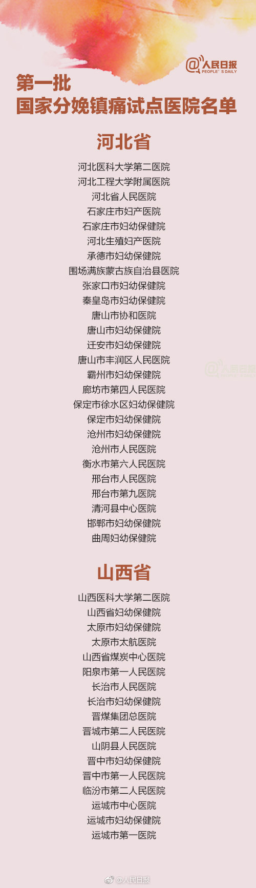 轉(zhuǎn)存!首批國(guó)家分娩鎮(zhèn)痛試點(diǎn)醫(yī)院名單來(lái)了!