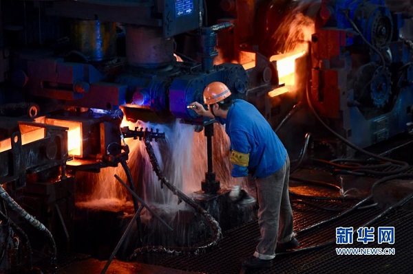 11月17日,工作人員在福建省三明市三鋼集團(tuán)中板廠內(nèi)作業(yè)。新華社記者 姜克紅 攝