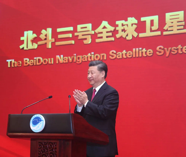 2020年7月31日上午,北斗三號全球衛(wèi)星導(dǎo)航系統(tǒng)建成暨開通儀式在北京舉行。中共中央總書記、國家主席、中央軍委主席習(xí)近平出席儀式,宣布北斗三號全球衛(wèi)星導(dǎo)航系統(tǒng)正式開通。新華社記者 鞠鵬 攝
