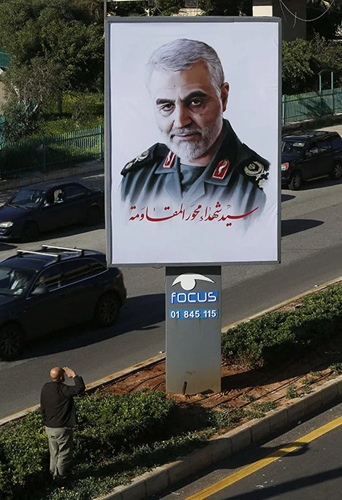 2020年1月6日,在黎巴嫩首都貝魯特,一名男子向在美國空襲中被炸身亡的伊朗伊斯蘭革命衛(wèi)隊將領(lǐng)蘇萊曼尼的肖像敬禮。新華社發(fā)(比拉爾·賈維希攝)