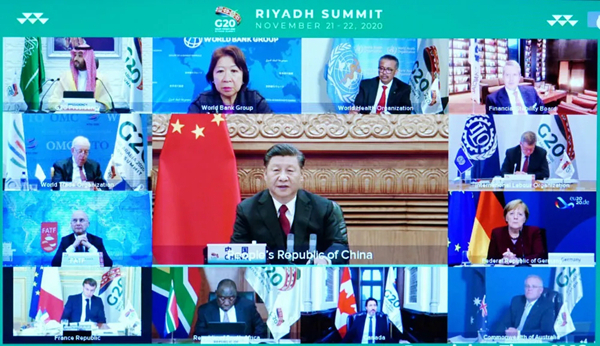 2020年11月22日晚,國家主席習(xí)近平在北京以視頻方式出席二十國集團領(lǐng)導(dǎo)人第十五次峰會第二階段會議,重點闡述關(guān)于可持續(xù)發(fā)展問題的看法。新華社記者 饒愛民 攝