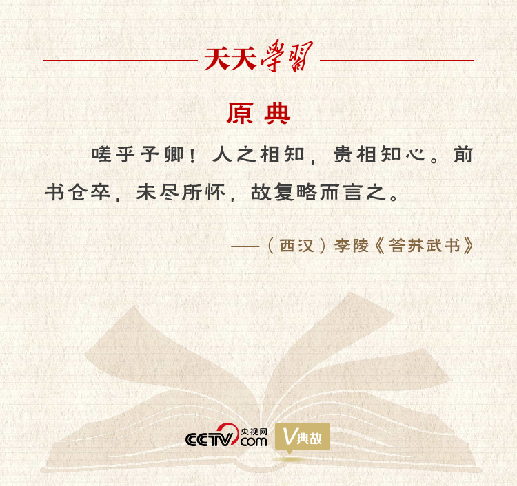 信中李陵為自己當(dāng)年投降匈奴的行為進(jìn)行辯白,并對蘇武發(fā)出了“人之相知,貴相知心”的慨嘆,認(rèn)為人與人之間的相互理解,最可貴的是彼此心靈相通。YhQ安康新聞網(wǎng)