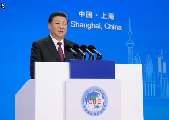 2018年11月5日,首屆中國國際進(jìn)口博覽會(huì)在上海開幕。習(xí)近平出席開幕式并發(fā)表題為《共建創(chuàng)新包容的開放型世界經(jīng)濟(jì)》的主旨演講。新華社記者 李學(xué)仁 攝