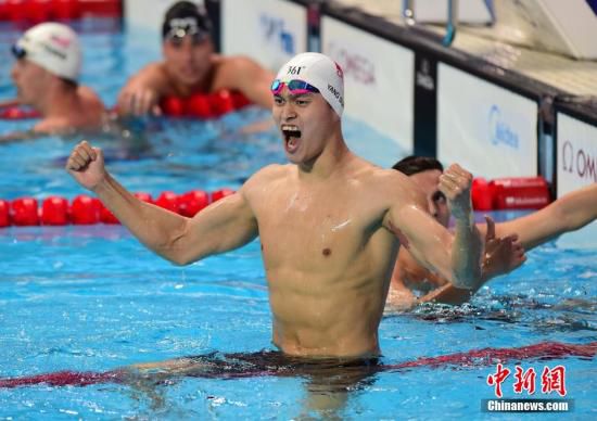 資料圖:當(dāng)?shù)貢r(shí)間8月2日傍晚,第16屆國際泳聯(lián)世錦賽游泳男子400米自由泳決賽在俄羅斯喀山市舉行,中國選手孫楊以3分42秒58獲得冠軍。圖為孫楊奪冠后在泳池內(nèi)怒吼……
