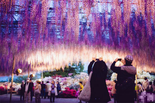 日本144歲紫藤花開 猶如紫色瀑布