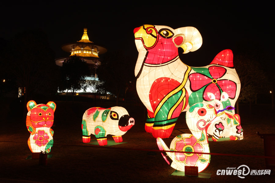 鳳翔的彩繪泥塑十二生肖被制成了花燈,泥塑彩羊則是當(dāng)仁不讓的主角。