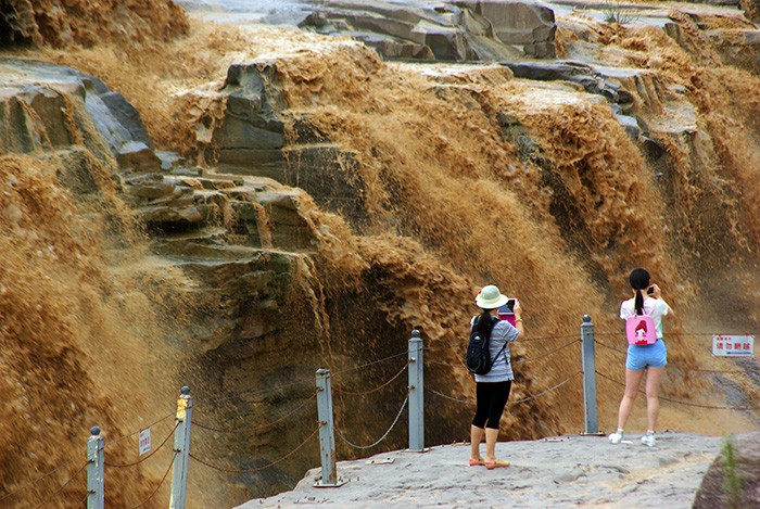 延安壺口瀑布進汛期 主副瀑布連一線