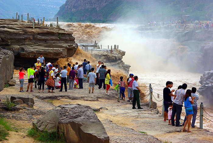 延安壺口瀑布進(jìn)汛期 主副瀑布連一線