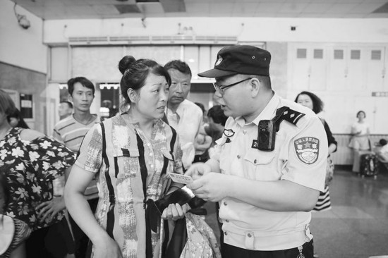 西安火車站執(zhí)勤民警在核實(shí)旅客車票信息