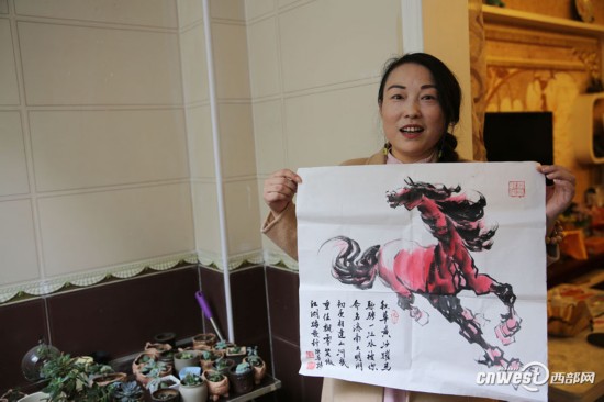 安康鎮(zhèn)坪縣縣城,夾在大巴山里的小城,打開窗戶就能聽到南江河嘩嘩的流水聲,生活在這里的王秀梅說是家鄉(xiāng)的山山水水觸動了她的詩情,寫詩也成了王秀梅最好的休閑方式。王秀梅的筆名叫胭脂小馬,這幅胭脂紅小馬是王秀梅的最愛。她說:“淡泊識詩味,寂寞著文章,我還會在白云上種地,我還會騎上我的胭脂小馬,馳騁在化龍山,縱情在南江河,還會尋找生命的根!Dkf安康新聞網(wǎng)