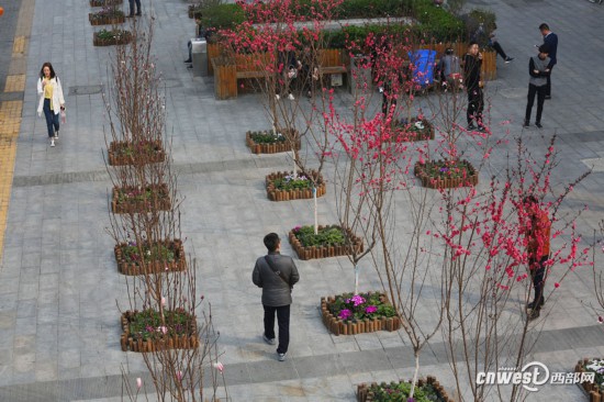 西部網(wǎng)訊(記者 魏永賢) 3月11日,西安小寨街頭的梅花、玉蘭花盛開(kāi),不少市民不相信這是真花,有人貼近看仔細(xì)看后說(shuō):“真的是真花!KFe安康新聞網(wǎng)