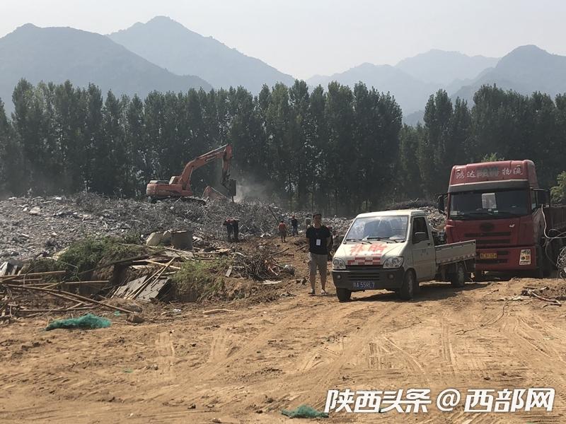 在灤鎮(zhèn)街道灃峪口村,一圈圍墻里的十棟別墅已經(jīng)拆掉了門窗,清理了內(nèi)部裝修,街道工作人員調(diào)集大型機(jī)械,集中人力,開始全力拆除主體部分。