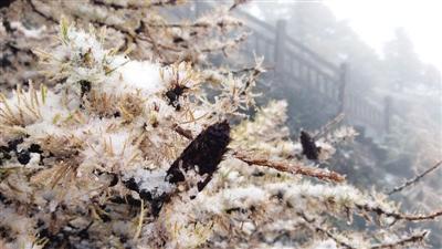 昨日15時(shí),太白山天圓地方景點(diǎn)地面上的積雪已達(dá)3—4厘米。 賈新輝 記者 代澤均 攝