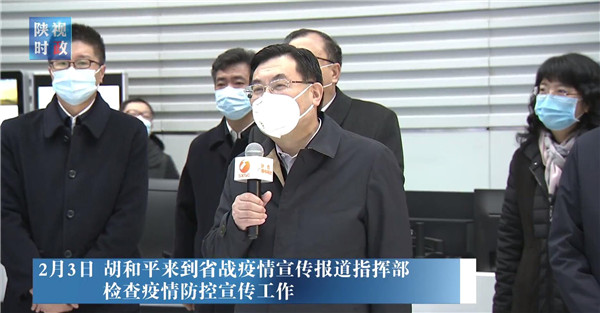2月3日,省委書(shū)記胡和平到省戰(zhàn)疫情宣傳報(bào)道指揮部和西安市檢查新型冠狀病毒感染的肺炎疫情防控工作,看望慰問(wèn)防控一線(xiàn)工作人員。
