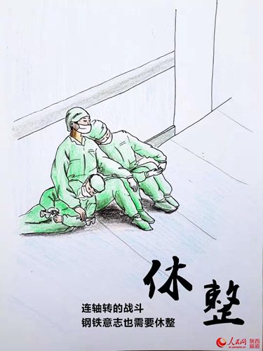 "我有不少醫(yī)生朋友,平時他們的工作就非常辛苦。尤其是這段時間,通過媒體報道以及我對自己身邊的醫(yī)護朋友動向的了解,我看到了奔赴一線抗疫的醫(yī)護人員所付出的艱辛和努力,這使我非常感動。我希望通過這組漫畫,為大家傳遞能量,呼吁積極抗擊疫情,為醫(yī)護人員吶喊助威、為武漢鼓勁、為中國加油。"李曉東說。