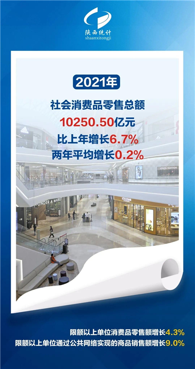 消費市場平穩(wěn)恢復(fù),2021年,全省實現(xiàn)社會消費品零售總額10250.50億元,同比增長6.7%,兩年平均增長0.2%。其中,新興消費穩(wěn)定增長,全省限額以上單位通過公共網(wǎng)絡(luò)實現(xiàn)的商品銷售785.57億元,同比增長9.0%,兩年平均增長18.9%。