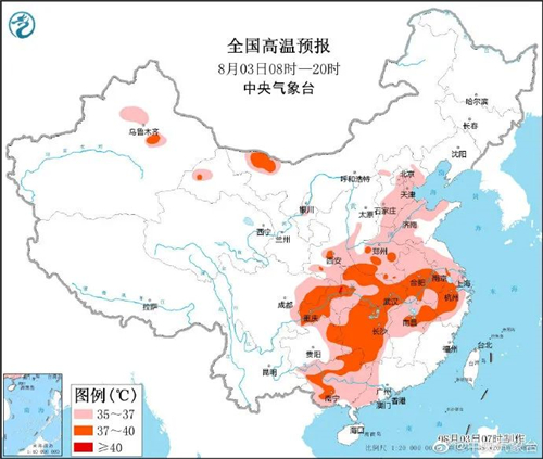 2022年8月3日10時(shí)00分,陜西省氣象臺(tái)發(fā)布高溫黃色預(yù)警 :受大陸高壓影響,3日榆林北部、關(guān)中大部、陜南大部地方有35℃以上的高溫天氣,其中咸陽(yáng)南部、楊凌、西安大部、渭南南部、漢中東部、安康部分地方可達(dá)37℃以上,安康平原地區(qū)局地可達(dá)40℃以上。