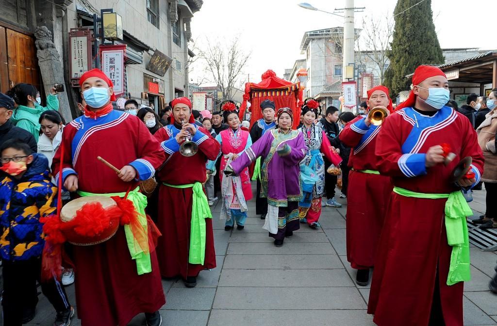 1月23日大年初二12:06,首批乘坐“韓城過(guò)大年”定制列車(chē)的400多名游客抵達(dá)韓城,走進(jìn)史圣故里,感受古城悠久的文化底蘊(yùn)和不一樣的韓城年味。游客們沿著新開(kāi)辟的“古城環(huán)線游”線路,依次游覽古城三廟、民俗博物館,欣賞非遺展覽,在古城美食街品嘗當(dāng)?shù)孛朗。行走在古城,社火、秧歌、踩高蹺…… 各色非遺表演精彩紛呈,游客們紛紛拿出手機(jī)留下精彩的瞬間,抱起孩子共享這難得的歡樂(lè)時(shí)光,體驗(yàn)這里濃濃的年味。