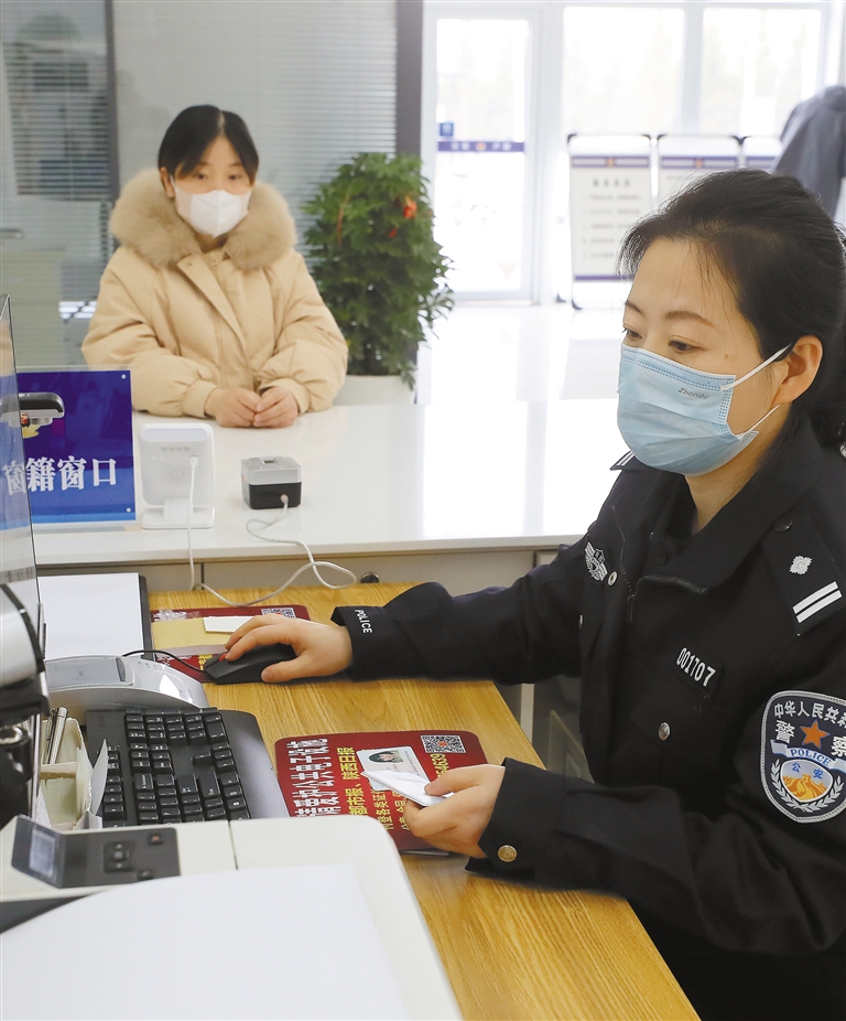 2023年12月28日,楊凌示范區(qū)政務(wù)服務(wù)中心公安分中心,民警鄭惠為群眾辦理身份證業(yè)務(wù)。 記者 安濤攝