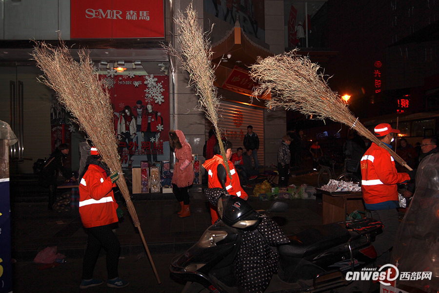 環(huán)衛(wèi)工人連夜出動,徹底掃完或到天亮。西部網(wǎng)訊(記者 趙昊 實習(xí)記者 劉望) 平安夜結(jié)束以后,稍早前人流密集的鐘樓、東大街、騾馬市步行街等處,地上殘留的垃圾……