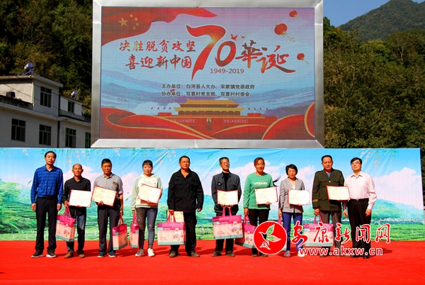 本網(wǎng)訊 (通訊員 吳磊 凌召兵)在慶祝中華人民共和國成立70周年之際,9月27日,由白河縣人大機(jī)關(guān)和宋家鎮(zhèn)黨委、政府主辦的“決勝脫貧攻堅(jiān) 喜迎新中國70華誕”演出活動在宋家鎮(zhèn)雙喜村隆重舉行。