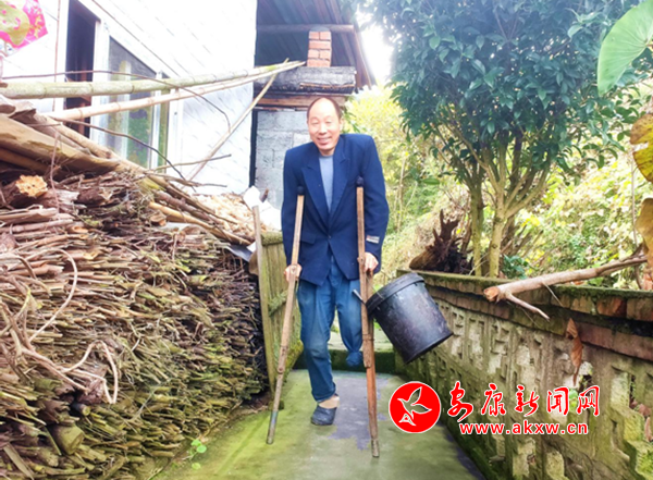 本網(wǎng)訊 (通訊員 商曼 劉靜)立冬節(jié)氣到來(lái),氣溫逐漸下降。早晨還來(lái)不及收拾,戴西春便拄著拐杖,拌豬食、喂豬仔,動(dòng)作嫻熟?吹轿覀儊(lái),他連忙單腿跳著進(jìn)屋拿板凳,招呼我們坐,滿臉笑容。