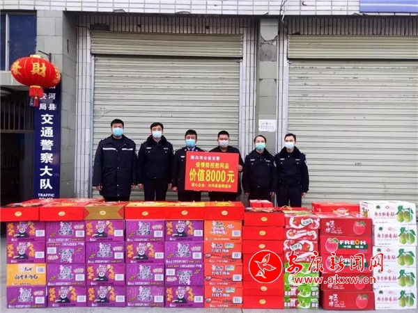 “看到你們公安交警為防控疫情,不畏寒冷,辛苦的工作我非常感動(dòng),作為一名共產(chǎn)黨員、一個(gè)企業(yè)家、一個(gè)公民,我也有義務(wù)盡一份社會(huì)責(zé)任。”2月8日下午,白河縣蠻哥南嶺子大眾超市將價(jià)值8000余元的水果、面包、牛奶等物資送到白河縣公安局交警大隊(duì),用濃濃的真誠厚意慰問戰(zhàn)斗在防控一線的公安干警。