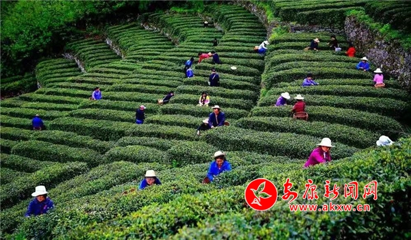 綿延的茶葉梯田坡坡相偎,縷縷茶香沁人心脾,碧綠的茶園如同飄揚的絲帶,沿著平坦開闊的“宋大公路”鋪開,在白河縣宋家鎮(zhèn)這抹綠色不僅是色彩,更是村民增收致富的法寶。按照“茶旅一體”的發(fā)展思路,該鎮(zhèn)建成標準化茶園2.5萬畝,力將茶區(qū)變景區(qū)。2021年,宋家鎮(zhèn)被農業(yè)農村部表彰為“一村一品”示范村鎮(zhèn)。