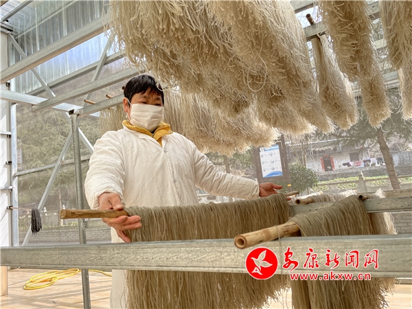 伴著明媚的春光,走進(jìn)焦贊村的招牌企業(yè)--白河縣希望農(nóng)產(chǎn)品加工合作社,一桿桿紅薯粉條正在懸掛、晾曬、消凍。生產(chǎn)車間內(nèi)熱氣騰騰,六七名工人組成一條生產(chǎn)線,經(jīng)過打芡、撈粉、晾粉等多道工序,金燦燦的紅薯粉條便成型了。憑借著質(zhì)量過硬、口碑好,合作社生產(chǎn)的紅薯粉條和洋芋粉在市場上很走俏,并與西安電子科技大學(xué)和縣內(nèi)外學(xué)校企業(yè)達(dá)成了長期供貨協(xié)議。