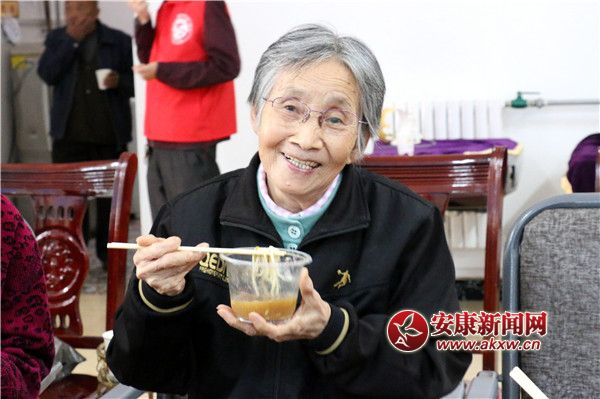 在后廚,志愿者們正緊張地為老人們準備長壽面。金燦燦的愛心煎蛋、熱鍋里來回翻滾的面條、散著股股清香的醬料,讓人垂涎三尺。“呲溜、呲溜...”吃上這碗熱氣騰騰的長壽面,讓老人們心里熱熱乎乎。