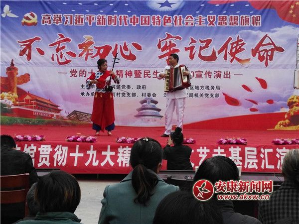 安康新聞網(wǎng)訊(通訊員 潘德安)為進一步學習貫徹宣傳黨的十九大精神,把思想和行動盡快統(tǒng)一到大會精神上來,以習近平新時代中國特色社會主義思想武裝頭腦,高標準、嚴要求、強責任、實舉措決勝脫貧攻堅戰(zhàn),11月16日,大河鎮(zhèn)文化站邀請安康漢韻知青藝術(shù)團為大河鎮(zhèn)伍河村開展“學習貫徹黨的十九大精神,決勝脫貧攻堅戰(zhàn)”主題文藝演出活動。