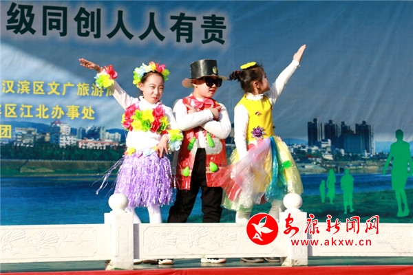 “今天是個好日子,心想的事兒都能成。”嘹亮的歌聲飄揚在校園里,暖人的冬陽照在每張笑臉上。11月21日,安康市文化文物廣電局、漢濱區(qū)文廣旅游局、江北辦晏臺村、江北小學(xué)聯(lián)合舉辦的“創(chuàng)建省級環(huán)保模范城市——‘五城聯(lián)創(chuàng)’進校園文藝匯演”在江北小學(xué)華麗上演,為江北辦“五城聯(lián)創(chuàng)•四級同創(chuàng)”工作注入活力,再添動力。