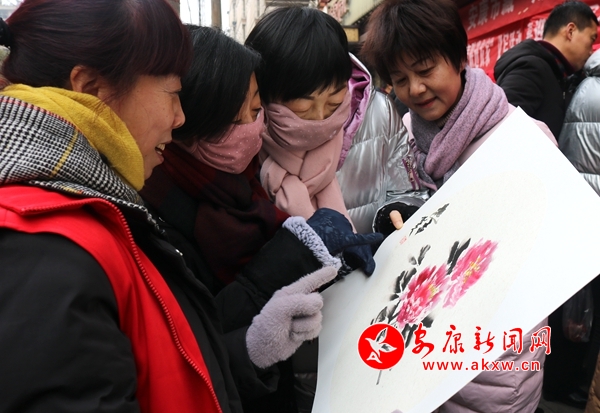“很高興到鼓樓社區(qū)寫(xiě)春聯(lián)、送祝福。”張思成點(diǎn)贊鼓樓社區(qū)充滿愛(ài)心、重視文化,提供很好的平臺(tái)讓書(shū)法家和居民一起交流學(xué)習(xí),營(yíng)造濃濃的春節(jié)民俗氛圍,F(xiàn)場(chǎng)不僅有著名的書(shū)法家,著名的畫(huà)家也為活動(dòng)增添色彩,“寒香臘梅”圖、“花開(kāi)富貴”圖、“事事如意”圖、“節(jié)節(jié)高升”圖等顏色艷麗、生動(dòng)活潑,美好的寓意是送給居民最溫暖的祝福。