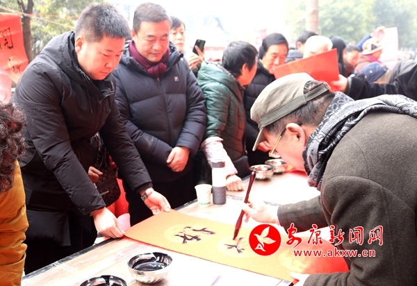 活動(dòng)現(xiàn)場(chǎng),八位著名書(shū)法家手持毛筆,嫻熟轉(zhuǎn)動(dòng)手腕, 安康日?qǐng)?bào)社張思成社長(zhǎng)剛把紅紙鋪開(kāi)就被居民里三層外三層圍了起來(lái),頃刻間,一副洋溢節(jié)日喜慶的“春臨大地百花艷 福至靈芝萬(wàn)象新”春聯(lián)就寫(xiě)好了。捧著稱心滿意的春聯(lián),劉先生連聲道謝。