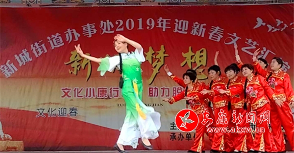 安康新聞網(wǎng)訊(通訊員 王穎 王潔)“歡天喜地迎小年,千家萬戶笑開顏”和著冬日暖陽,2019年1月28日下午,由漢濱區(qū)新城街道辦事處舉辦的“新城夢想 文化小康行動•助力脫貧攻堅”2019年迎新春文藝匯演在香溪文化廣場隆重舉行,F(xiàn)場人頭攢動、歡歌笑語,洋溢著一派喜氣洋洋的節(jié)日氣氛。